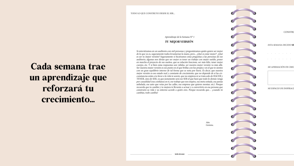 -Aprendizaje de la semana. (30 aprendizajes en donde se abordan temas de sueños, metas, propósitos, amor propio, entre otros).